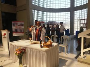 Alrededor de las 2:30 p.m. se dio inicio a la eucaristía organizada por las Gerencia de Asuntos Públicos y Desarrollo Social, desde las instalaciones del Lobby de Lineal, a cargo del Sacerdote Rubén Martinez y el Seminarista Edixon Pirela, con el acompañamiento del Coro Nuestra Sra. Del Carmen de los Jobitos.